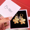 Oorbellen met een cluster van edelstenen en bloem - nude