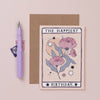 Verstuur verjaardagswensen met deze door tarotkaarten geïnspireerde verjaardagskaart, met een met de hand geschilderde bloeiende bloem omringd door mystieke sterren en tarotkaartdetails. Perfect om te sturen naar moeders, sterrenkijkers, plantenliefhebbers of vrienden die zich aangetrokken voelen tot spirituele of boho verjaardagskaarten.