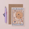 Deze Valentijnskaart maakt deel uit van de Tarot-collectie van Sister Paper Co. Deze collectie is geïnspireerd door traditionele tarotkaartillustraties, met afbeeldingen uit de mystieke decks in een pastelpalet van roze, paars, oranje en neutrale tinten.